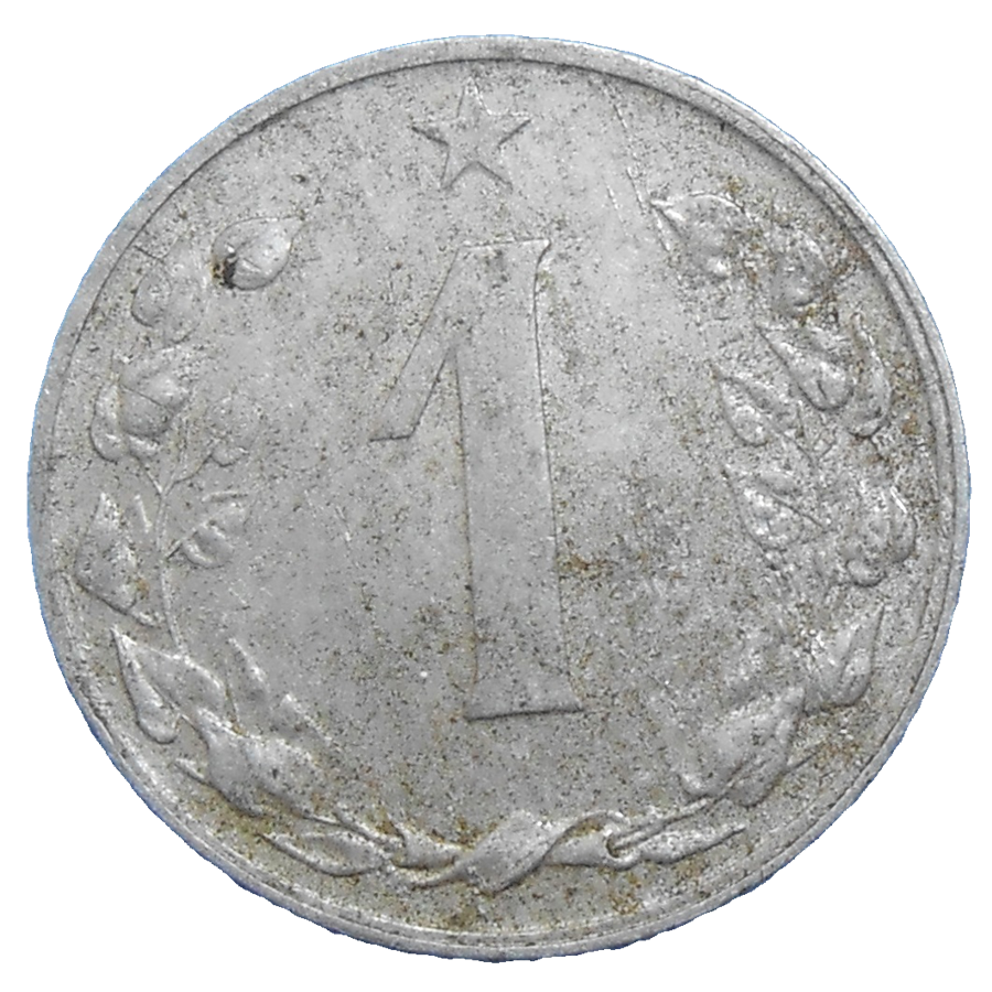 Stará, hliníková, obehová minca Československa v hodnote 1 Halieru z roku 1954.
