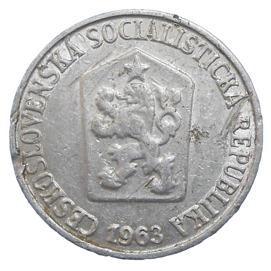 Stará, hliníková, obehová minca Československa v hodnote 1 Halieru z roku 1963.