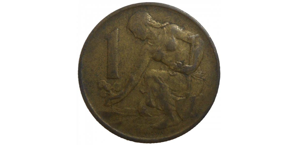 Stará, obehová minca Československa v hodnote 1 Koruny z roku 1982.