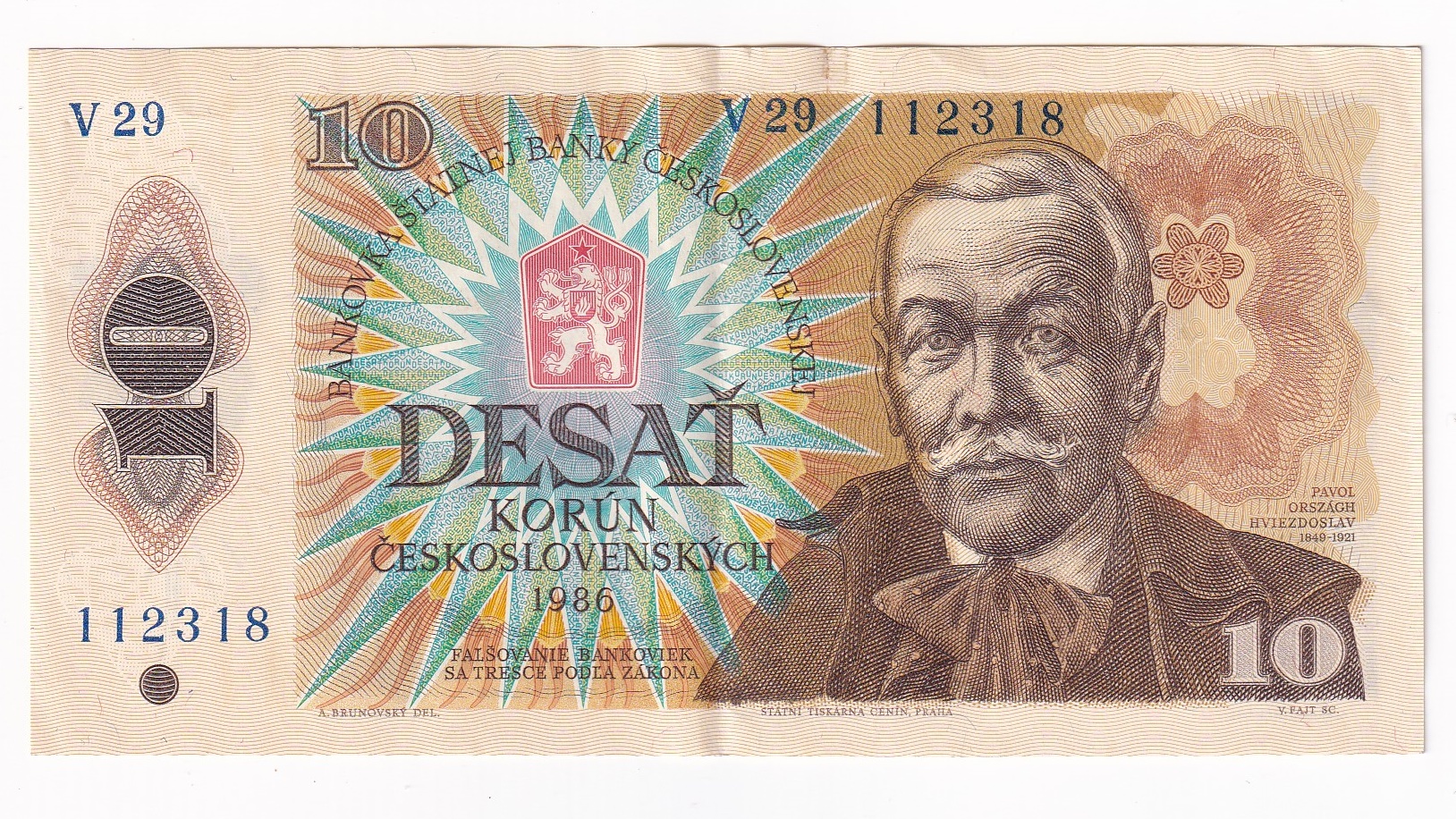 10 Korún 1986 V29. Séria V29 112318. Stará, obehová bankovka Československa v hodnote 10 korún z roku 1986 – Numizmatický obchod