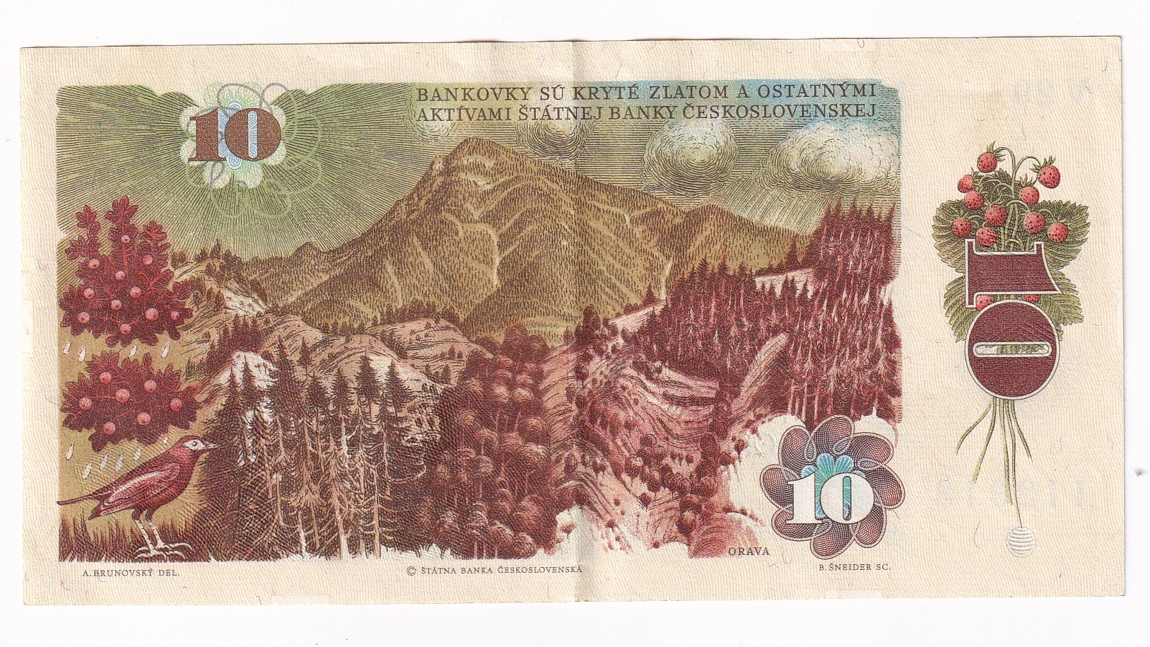 Stará, obehová bankovka Československa v hodnote 10 Korún z roku 1986.