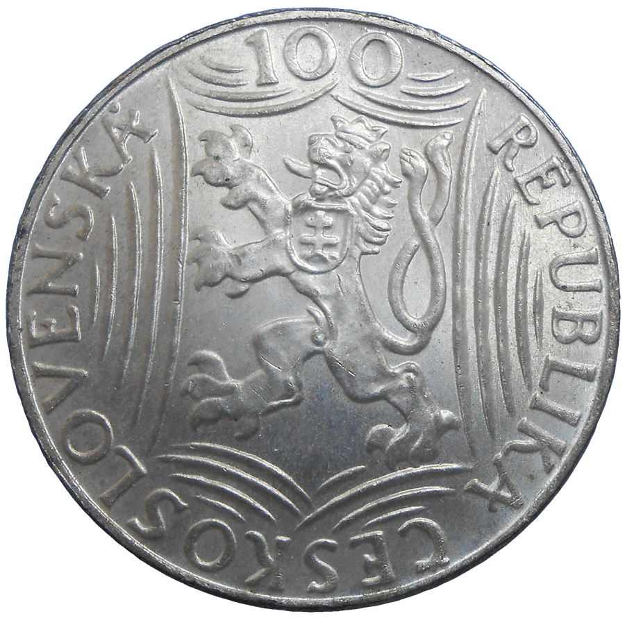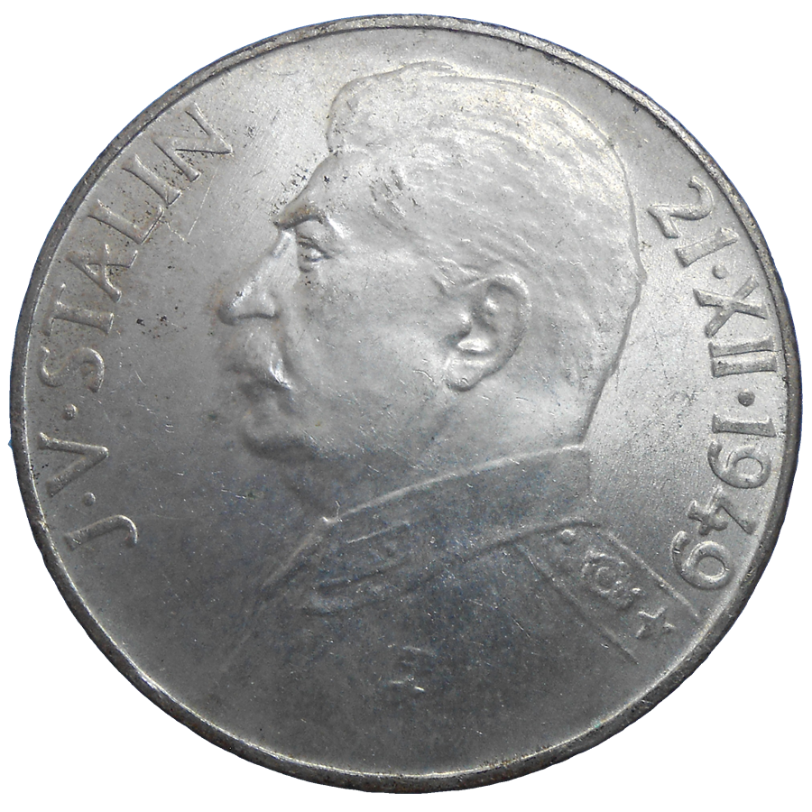 Strieborná pamätná minca Československa v hodnote 100 Korún z roku 1949, vyrazená pri príležitosti 70. narodenín J. V. Stalina.