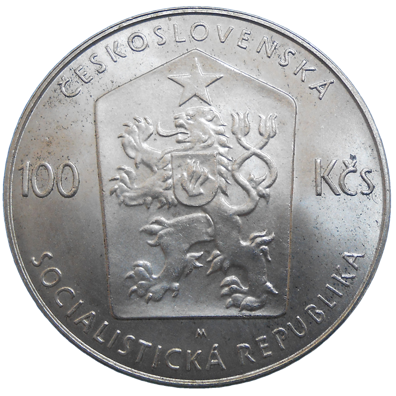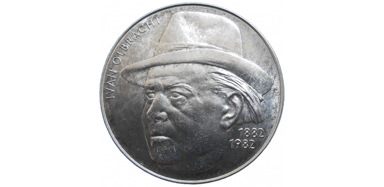 Strieborná, pamätná minca Československa v hodnote 100 Korún z roku 1982, vydaná pri príležitosti 100. výročia narodenia Ivana Olbrachta.