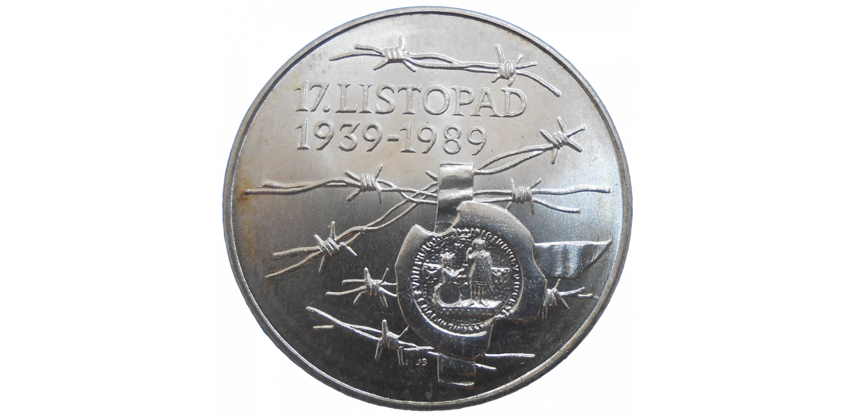 Strieborná pamätná minca Československa v hodnote 100 Korún z roku 1989 vyrazená pri príležitosti 50. výročia udalosti zo 17. novembra 1939.