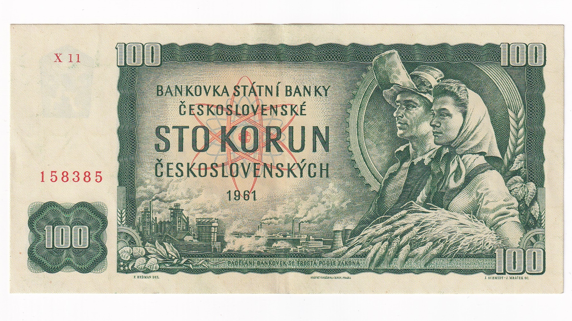 100 Korún 1961 X11. 158385. Stará, obehová bankovka Československa v hodnote 100 Korún z roku 1961 – Numizmatický obchod