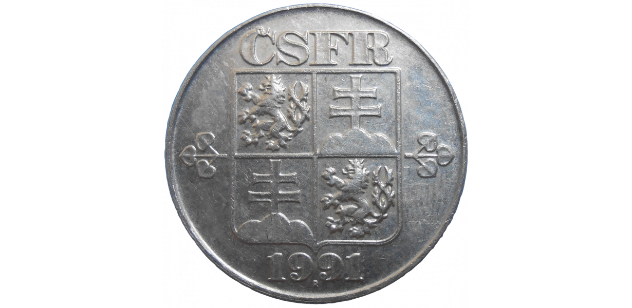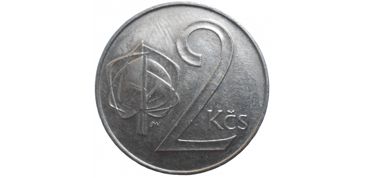 Stará, obehová minca Československa v hodnote 2 Koruny z roku 1991.