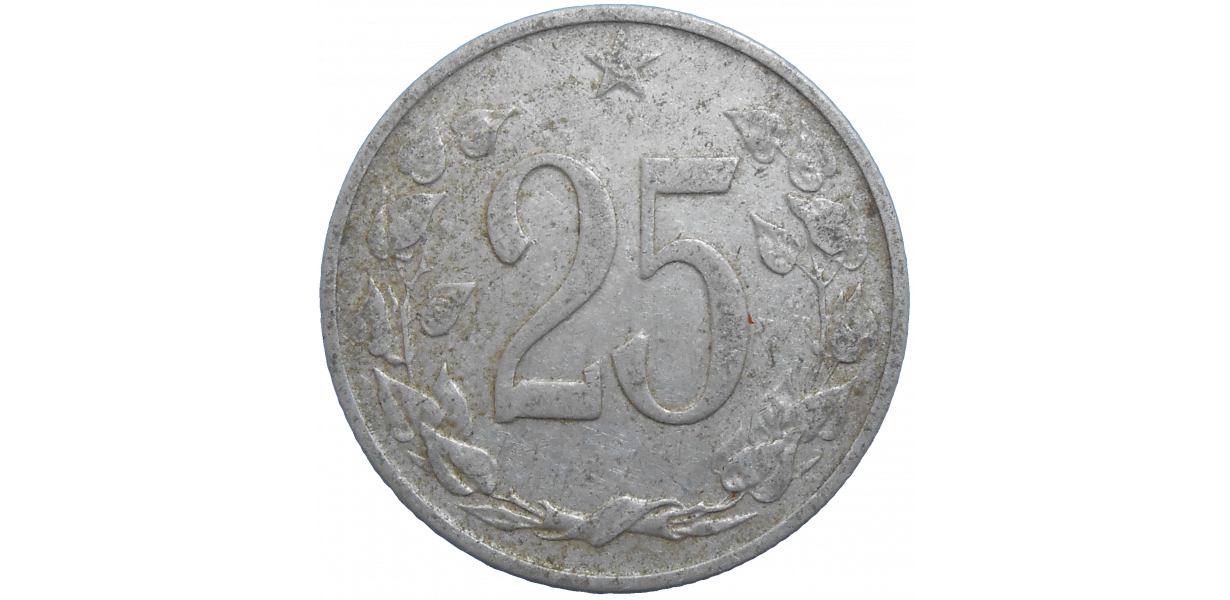 Stará, hliníková, obehová minca Československa v hodnote 25 Halierov z roku 1964.