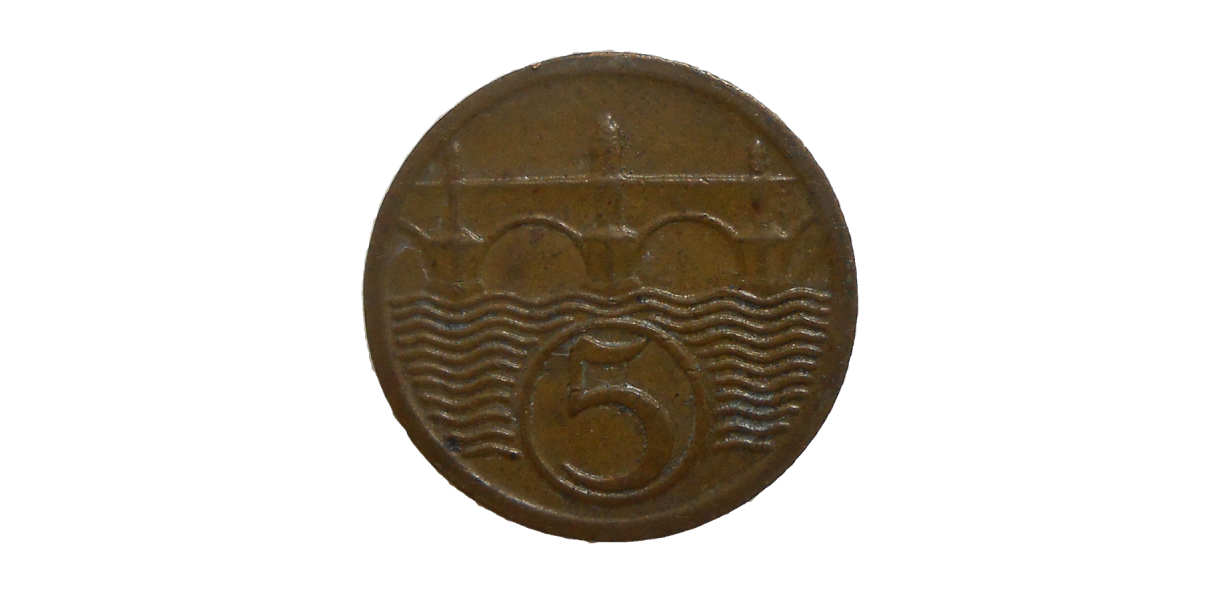 Stará, obehová minca Československa v hodnote 5 halierov z roku 1929.