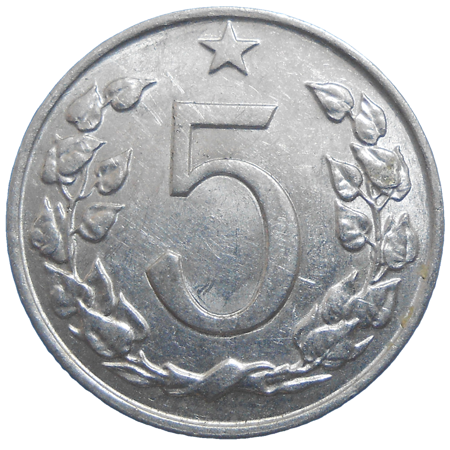 Stará, hliníková, obehová minca Československa v hodnote 5 Halierov z roku 1963.