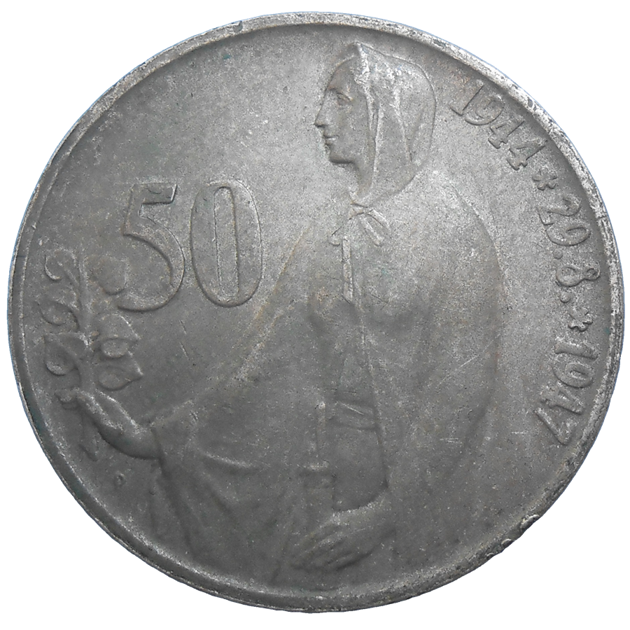 Stará, strieborná, pamätná minca Československa v hodnote 50 korún z roku 1947, vyrazená pri príležitosti 3. výročia Slovenského Národného Povstania.