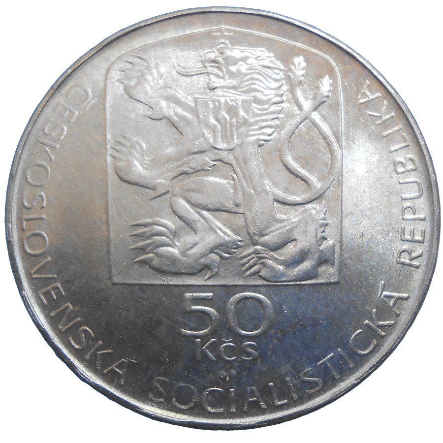 Stará, strieborná, pamätná minca Československa v hodnote 50 korún z roku 1973, vyrazená pri príležitosti 100. výročia narodenia Janka Jesenského.