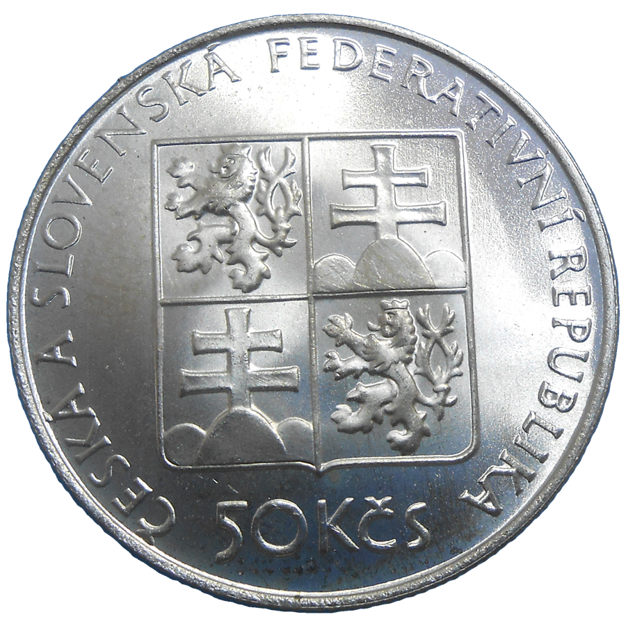 50 KČS 1991 Karlove Vary Strieborná, pamätná minca Československa v hodnote 50 Korún z roku 1991. Na označenie zachovalosti mincí