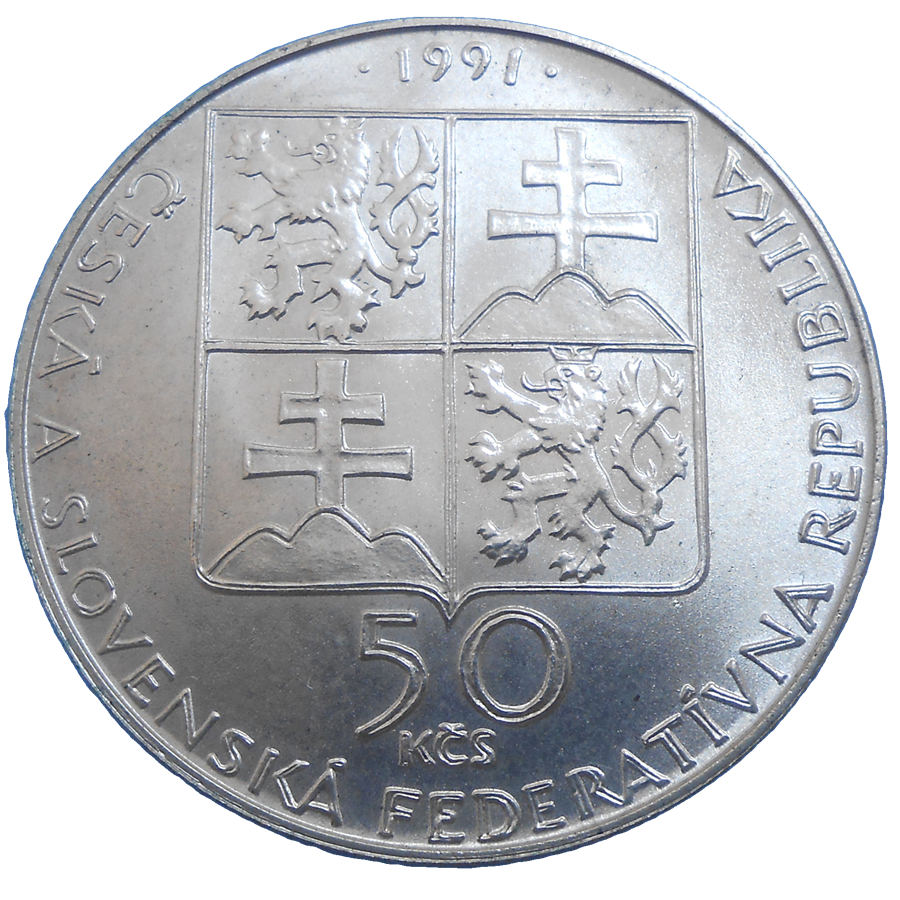 50 KČS 1991 Piešťany. Stará, strieborná, pamätná minca Československa v hodnote 50 korún z roku 1991 – Numizmatický obchod