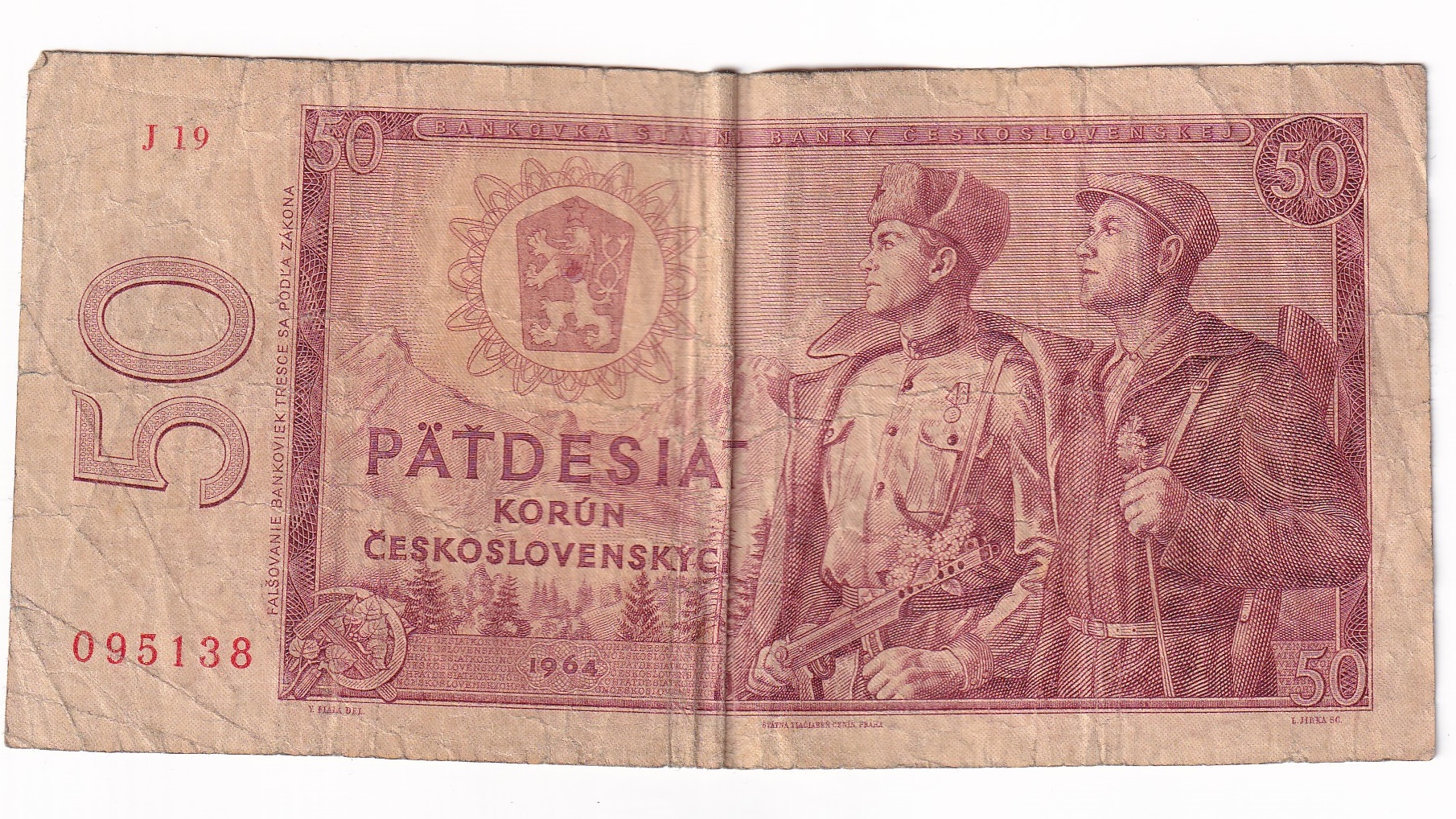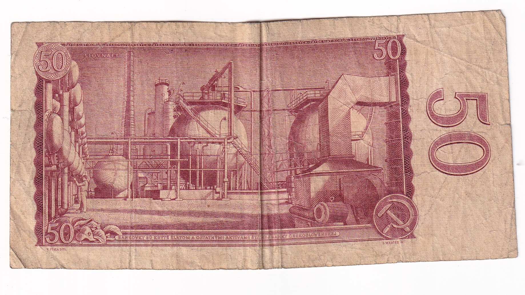 Stará, obehová bankovka Československa v hodnote 50 Korún z roku 1964.