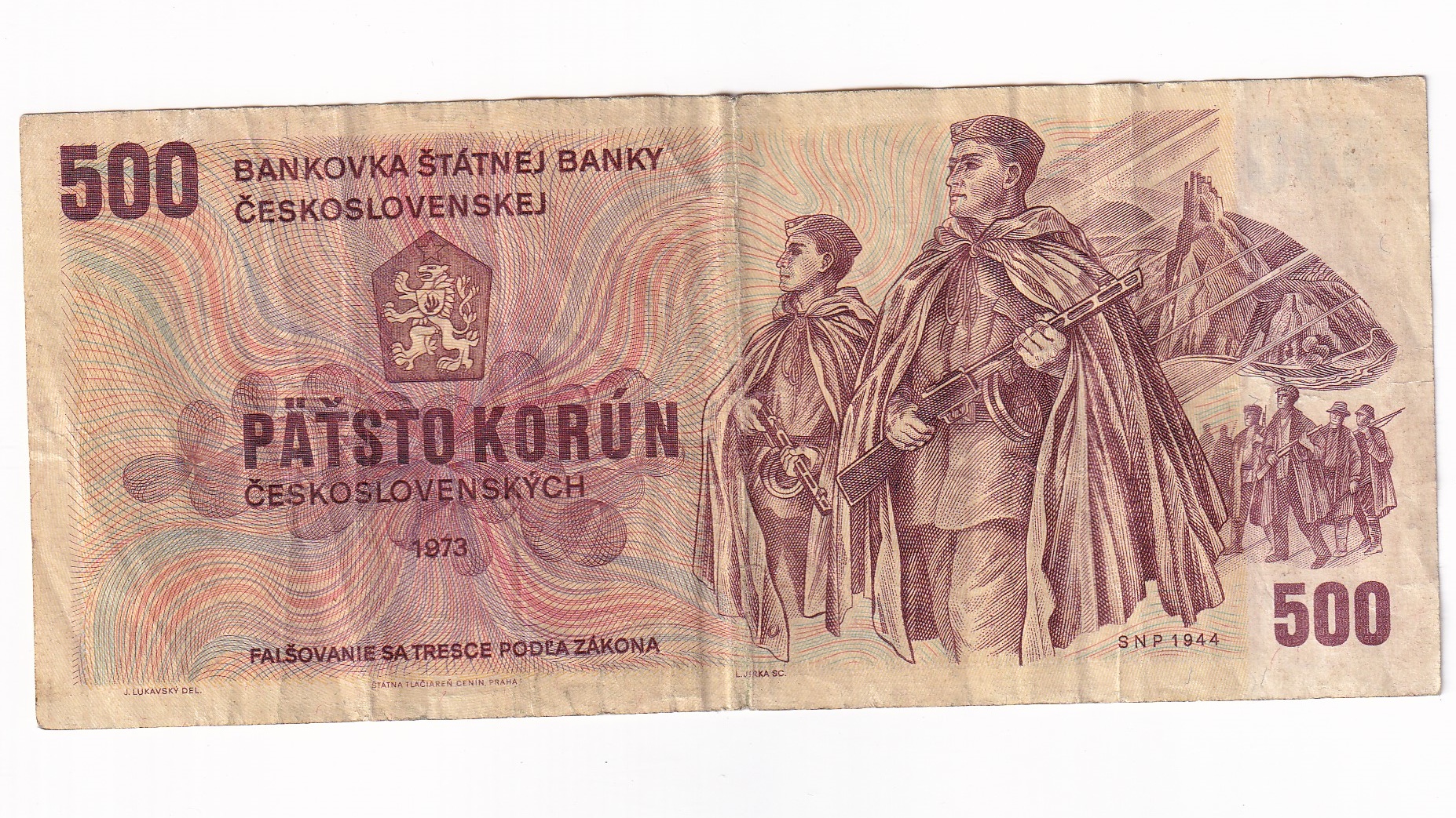 Stará, obehová bankovka Československa v hodnote 500 Korún z roku 1973.
