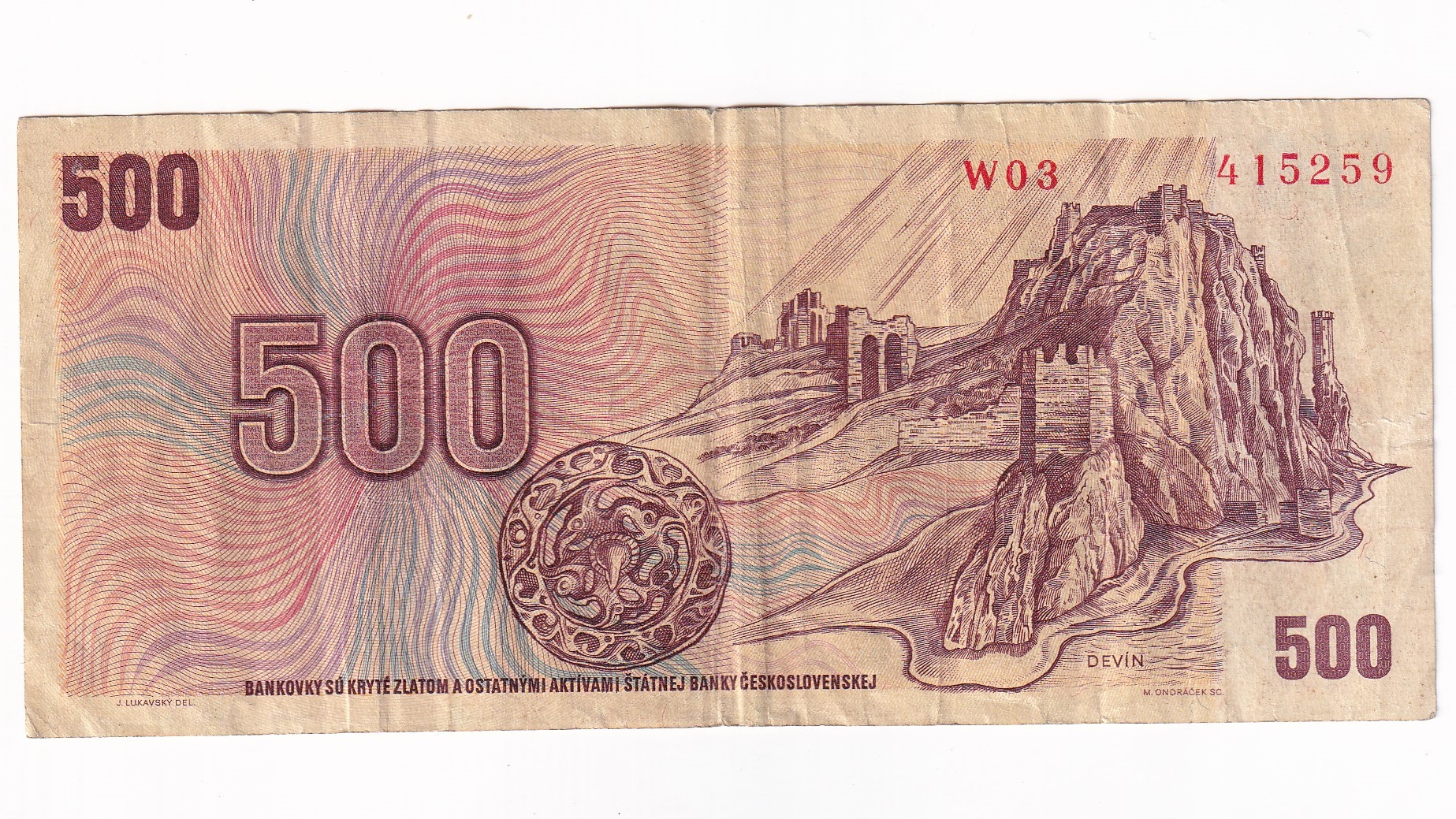 500 Korún 1973 W03. Séria W03 415259. Stará, obehová bankovka Československa v hodnote 500 korún z roku 1973 – Numizmatický obchod