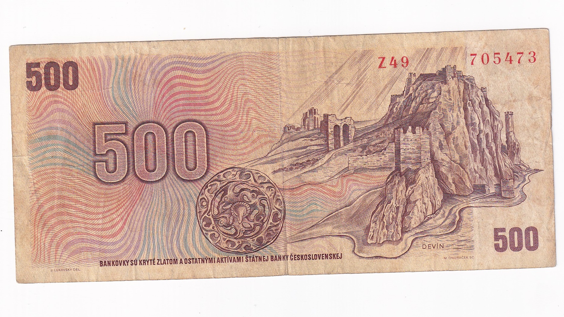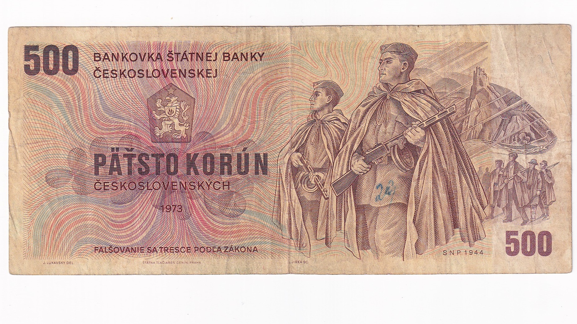 Stará, obehová bankovka Československa v hodnote 500 Korún z roku 1973.