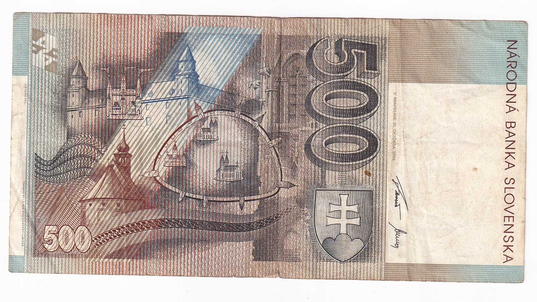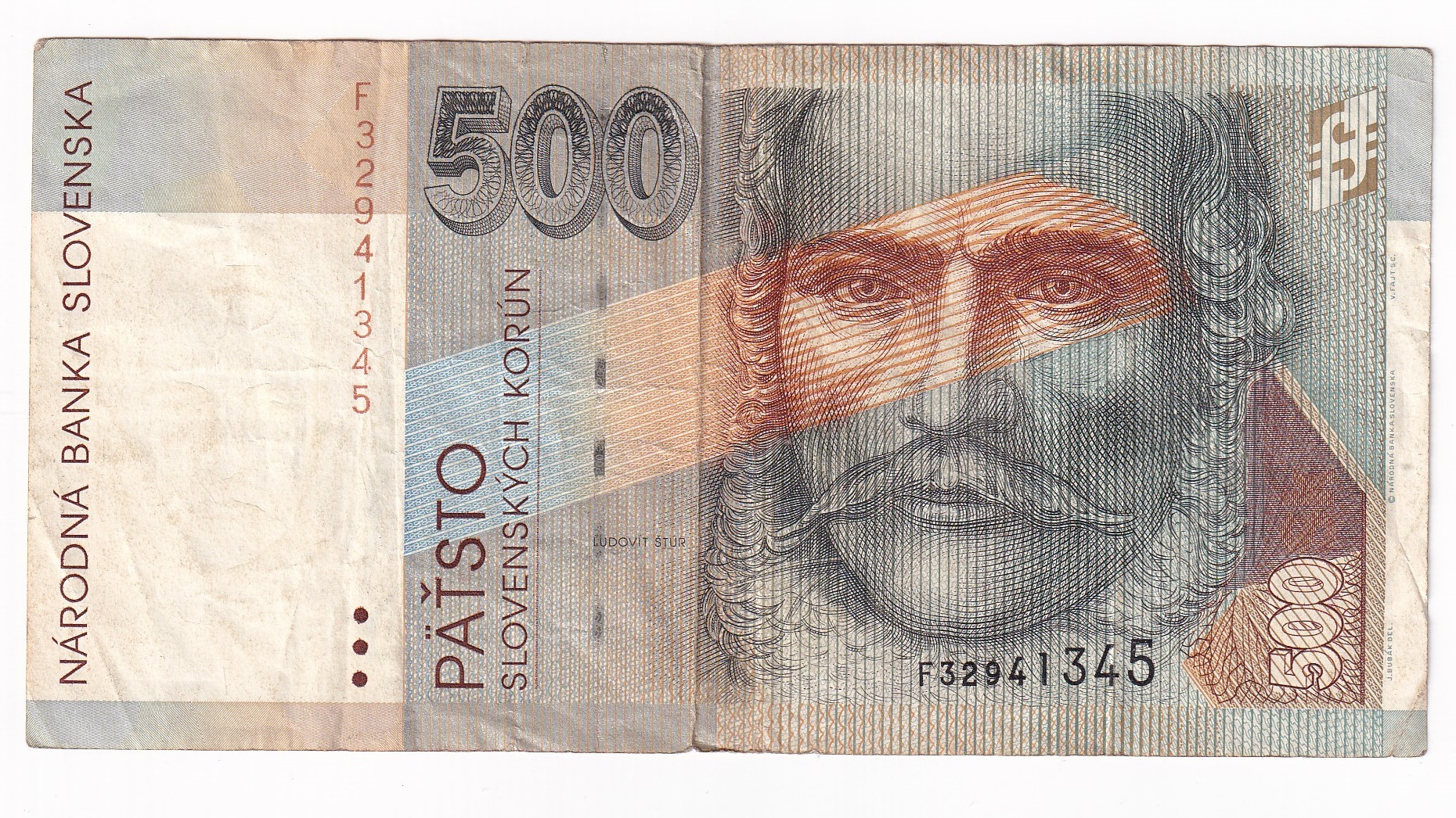 Stará, obehová bankovka Slovenskej republiky v hodnote 500 Korún z roku 1996.