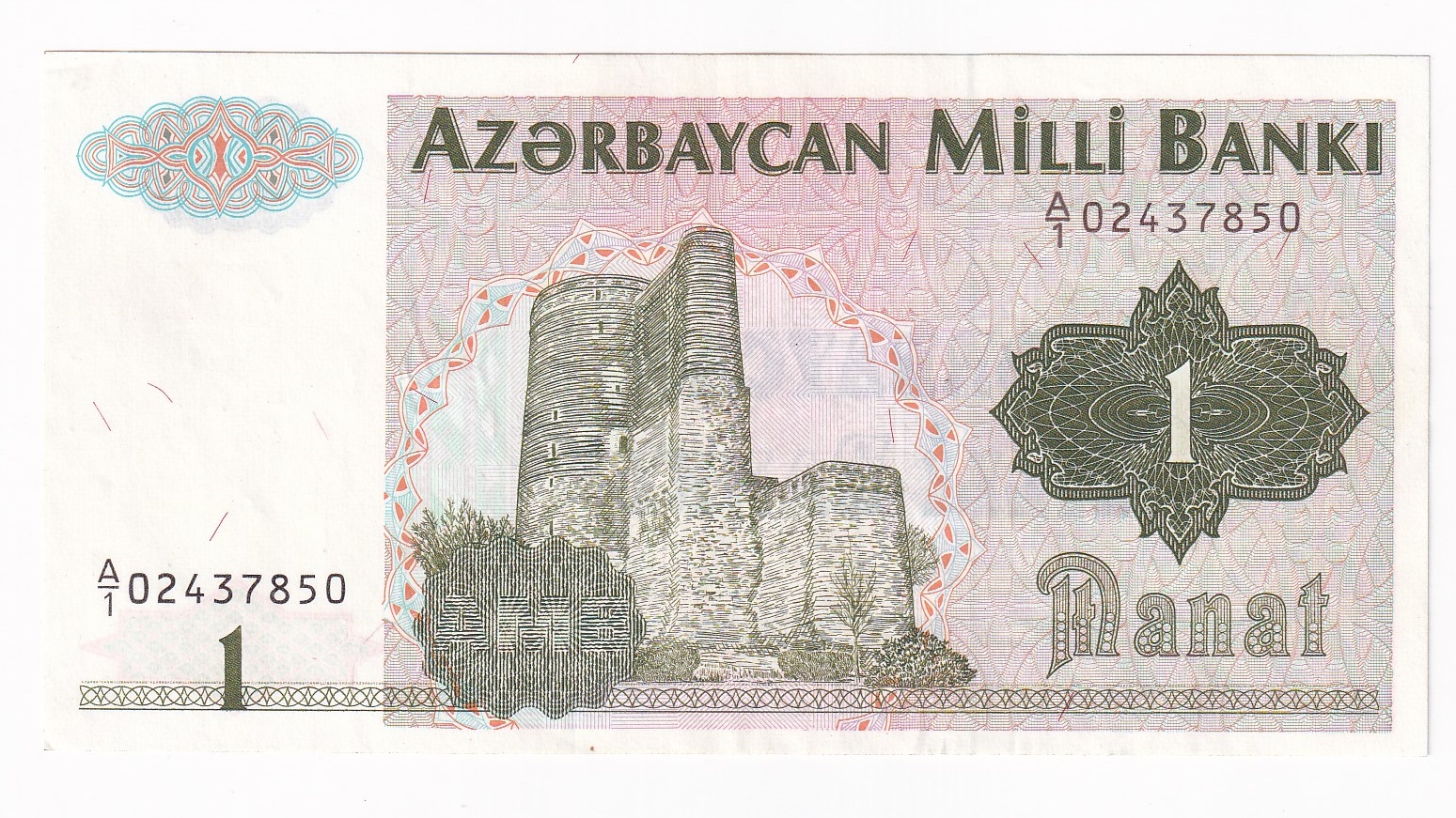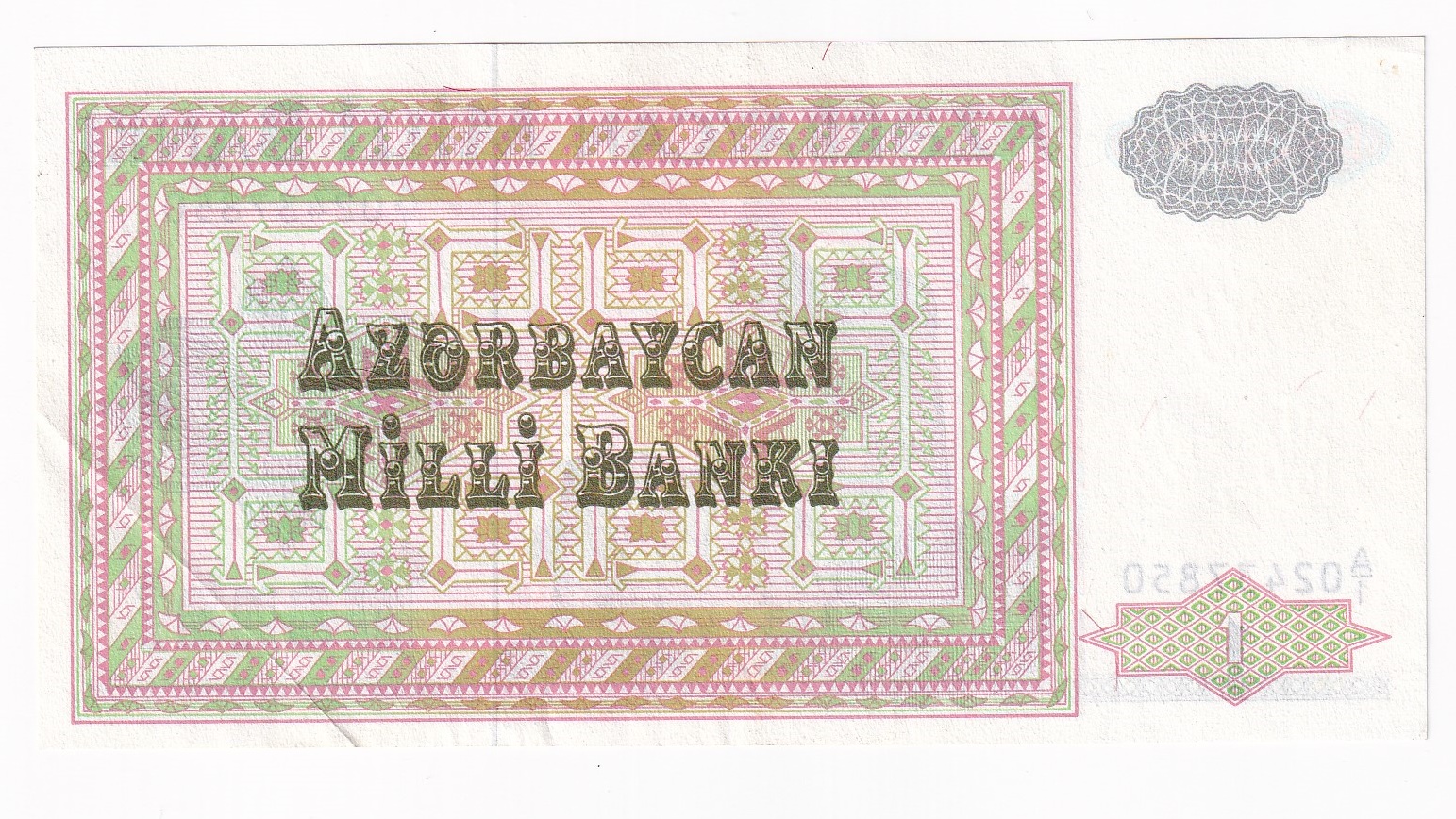 Azerbajdžan 1 Manat 1992. Séria A1 02437850. Stará, obehová bankovka Azerbajdžanu v hodnote 1 Manat z roku 1992 – Numizmatický obchod