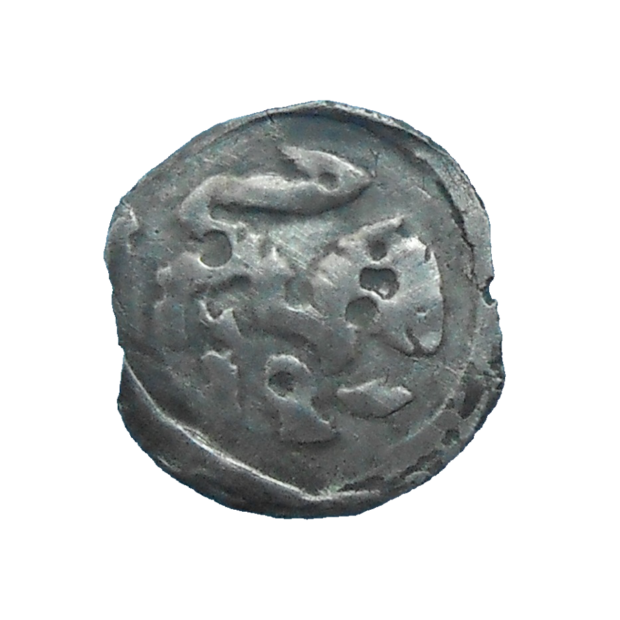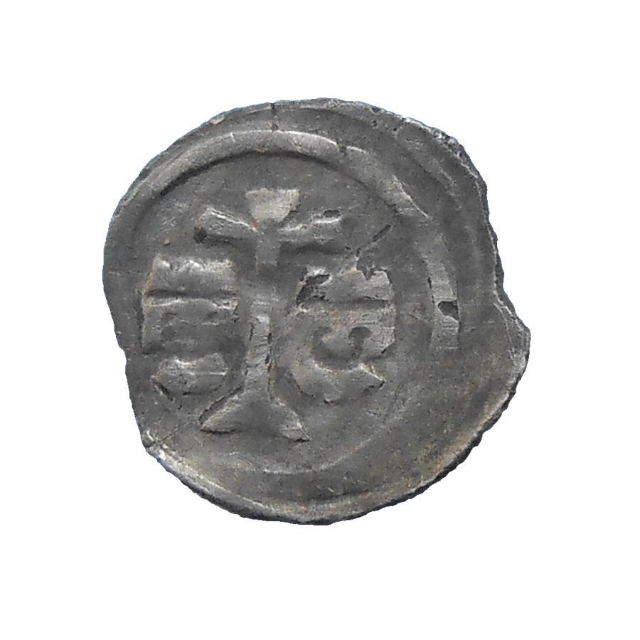 Stredoveká, strieborná, obehová minca Belu IV. v hodnote obolu z 13. storočia.