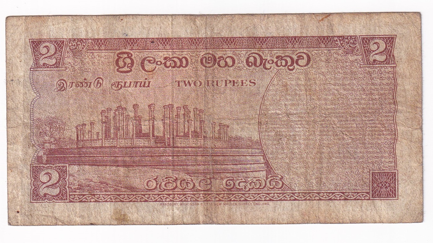 Stará, obehová bankovka Ceylonu (Srí Lanka) v hodnote 2 Rupees z roku 1965.