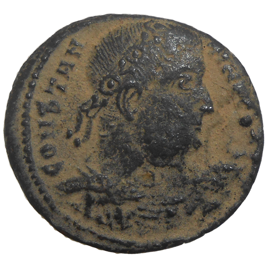 Stará, bronzová, obehová minca cisára Constantia II. v hodnote folisu zo 4. storočia nášho letopočtu.