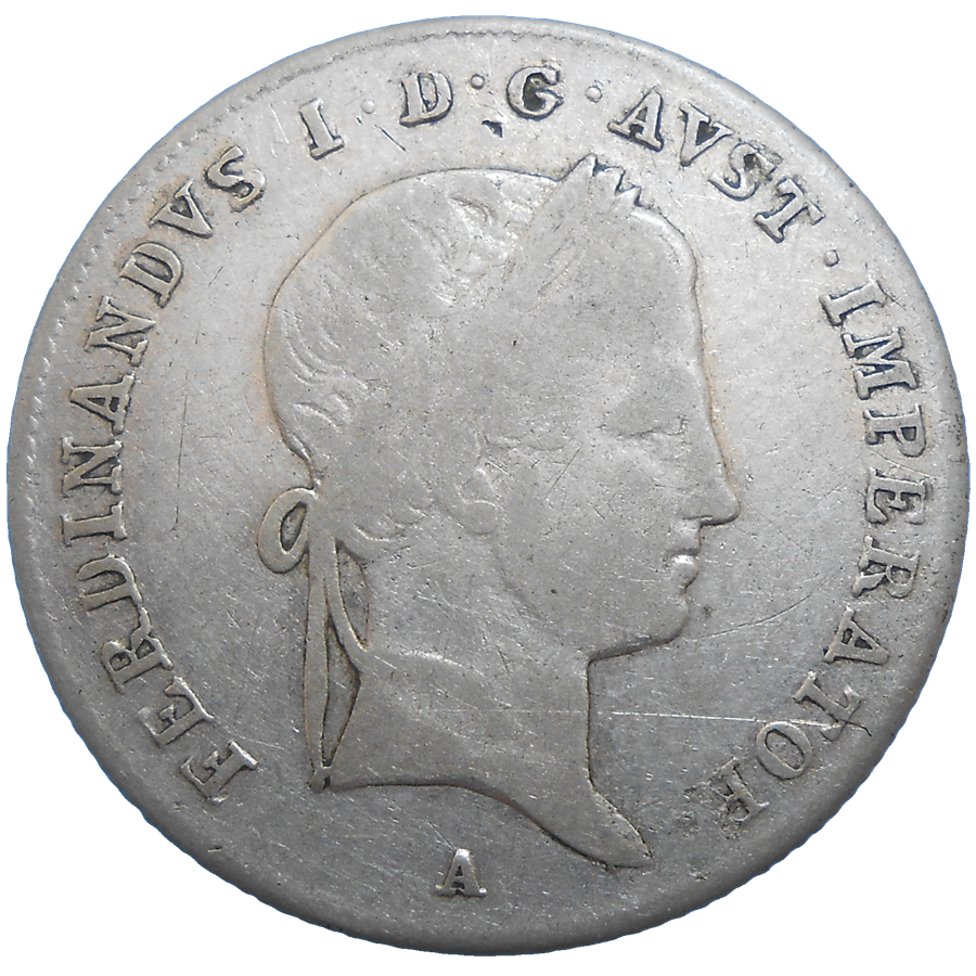 Ferdinand V. 20 grajciar 1841 A. Stará, strieborná, obehová minca Ferdinanda V. v hodnote 20 grajciaru z roku 1841 - Numizmatický obchod
