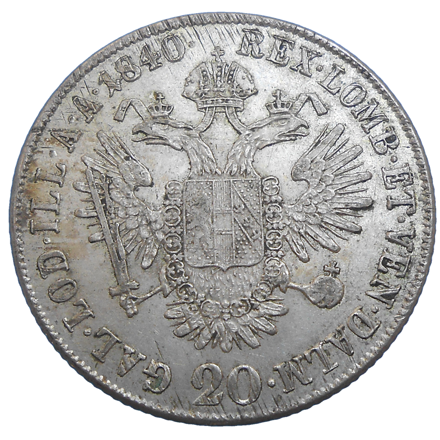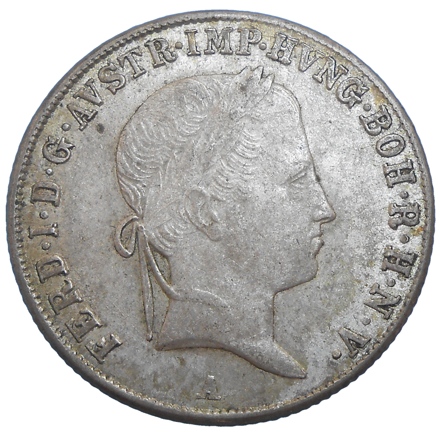 Ferdinand V. 20 grajciar 1840 A. Stará, strieborná, obehová minca Ferdinanda V. v hodnote 20 grajciaru z roku 1840 – Numizmatický obchod