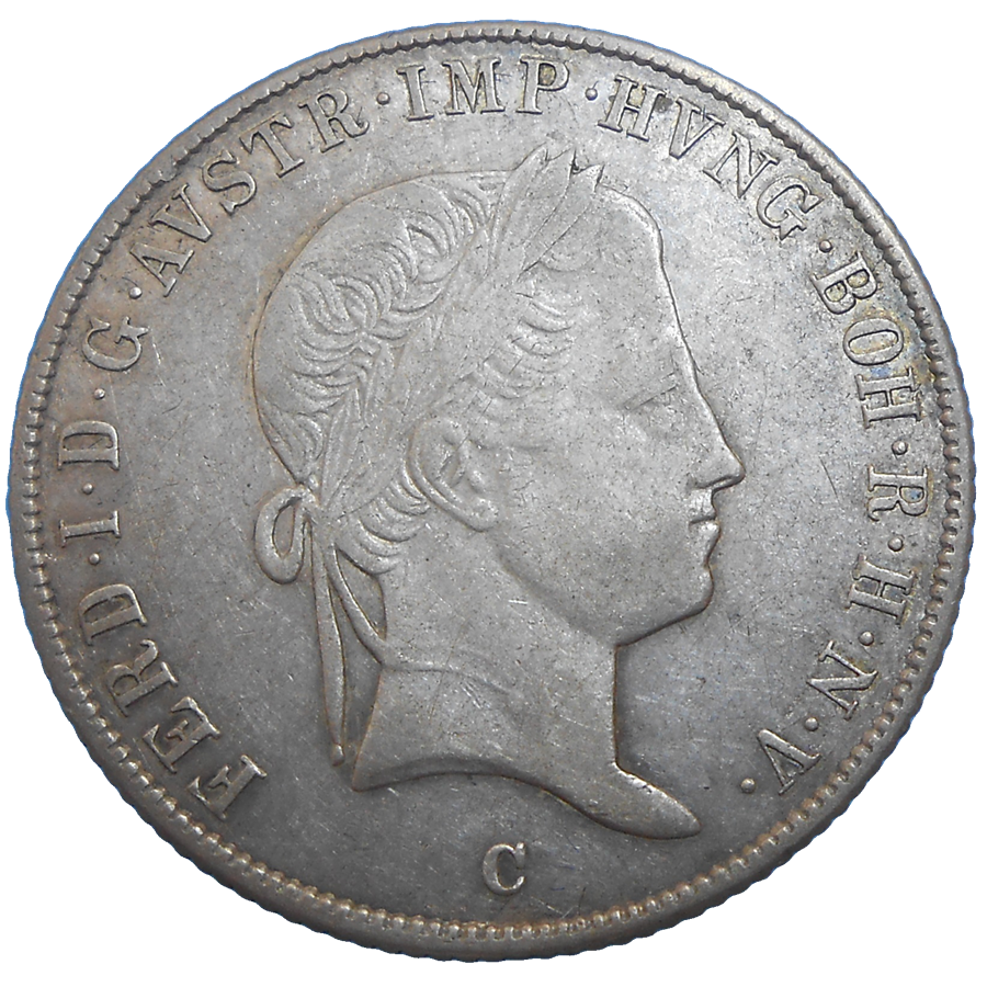Ferdinand V. 20 grajciar 1846 C. Stará, strieborná, obehová minca Ferdinanda V. v hodnote 20 grajciaru z roku 1846 - Numizmatický obchod