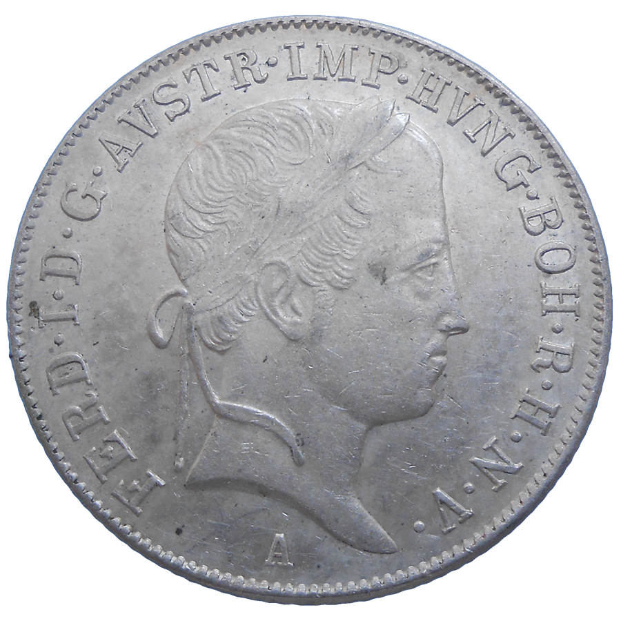 Ferdinand V. 20 grajciar 1841 A. Stará, strieborná, obehová minca Ferdinanda V. v hodnote 20 grajciaru z roku 1841 - Numizmatický obchod