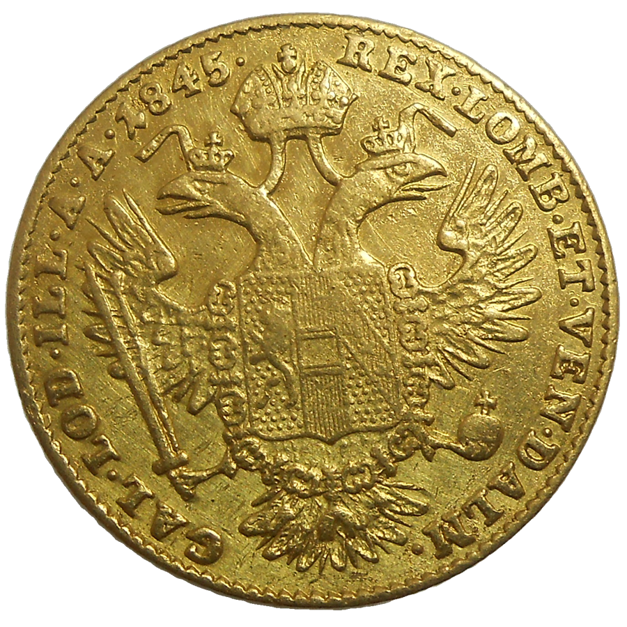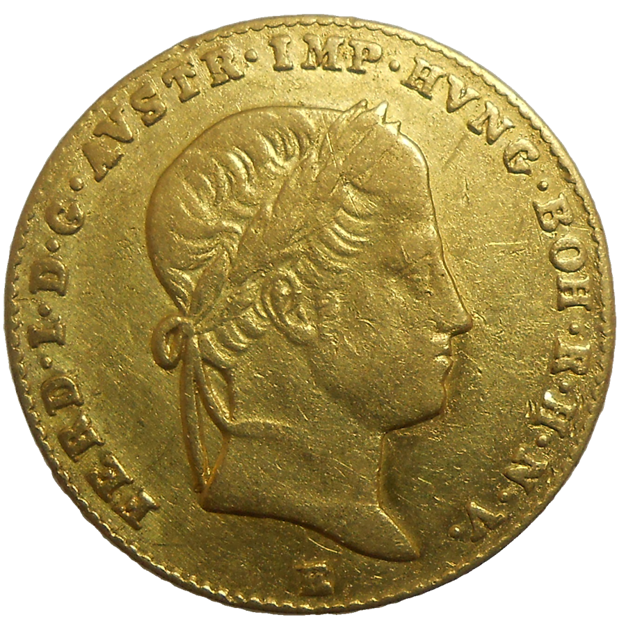 Ferdinand V. Dukát 1845 E. Stará, zlatá, obehová minca Ferdinanda V. v hodnote dukátu z roku 1845 – Numizmatický obchod