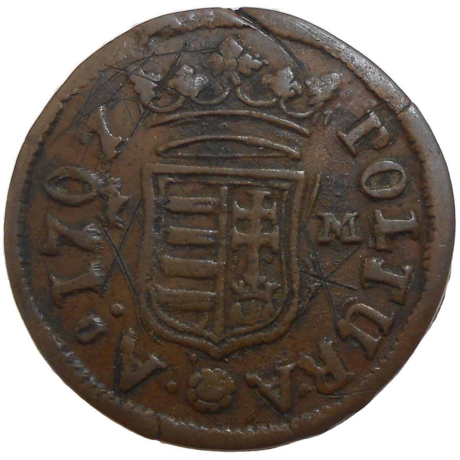 František II. Rákoci poltura 1706 KB, Mincovňa Kremnica, Stará, medená, obehová minca Františka II. Rákociho v hodnote poltury z roku 1706 - Numizmatický obchod