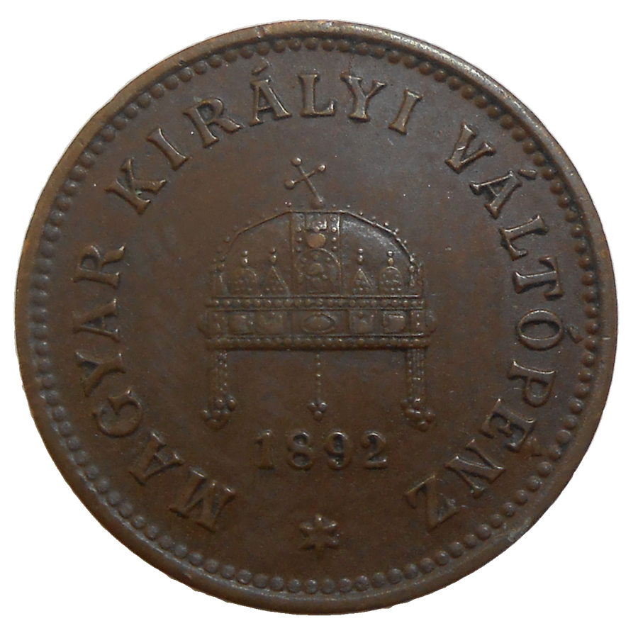 Stará, bronzová, obehová minca Františka Jozefa I. v hodnote 1 Filléru z roku 1892.