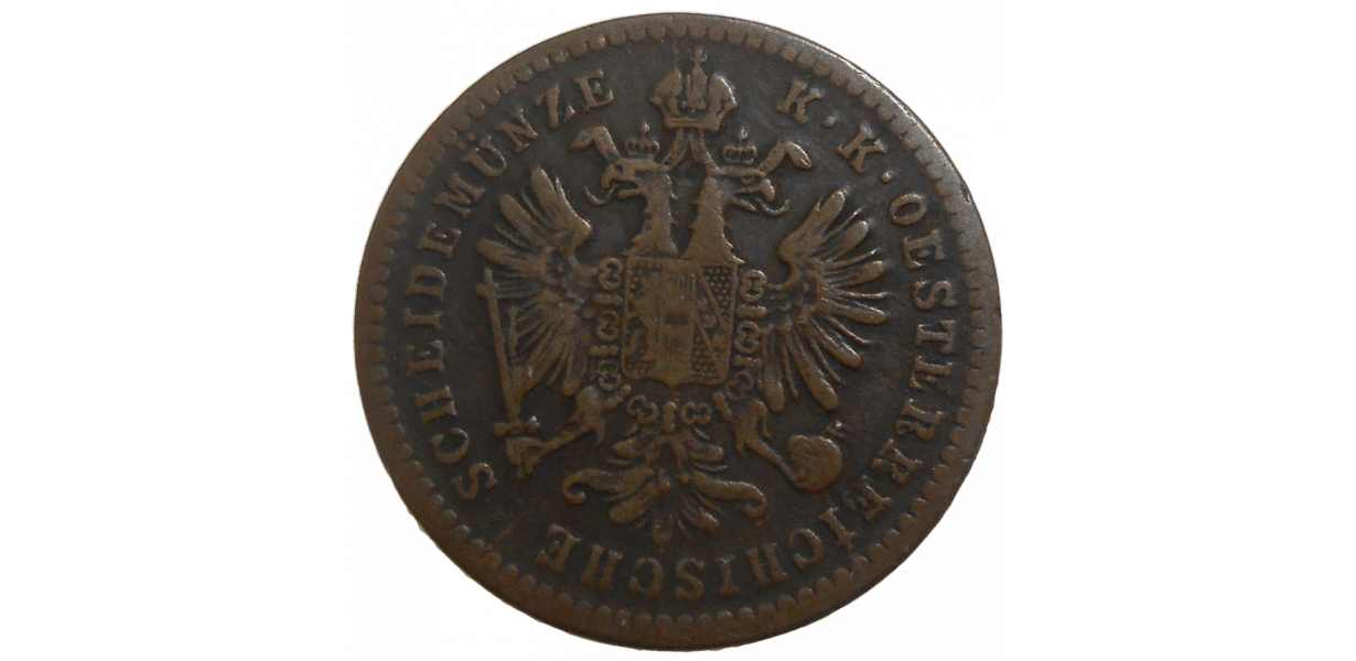 František Jozef I. 1 grajciar 1858 B, Mincovňa Kremnica, Stará, medená, obehová minca Františka Jozefa I. v hodnote 1 grajciaru z roku 1858 - Numizmatický obchod