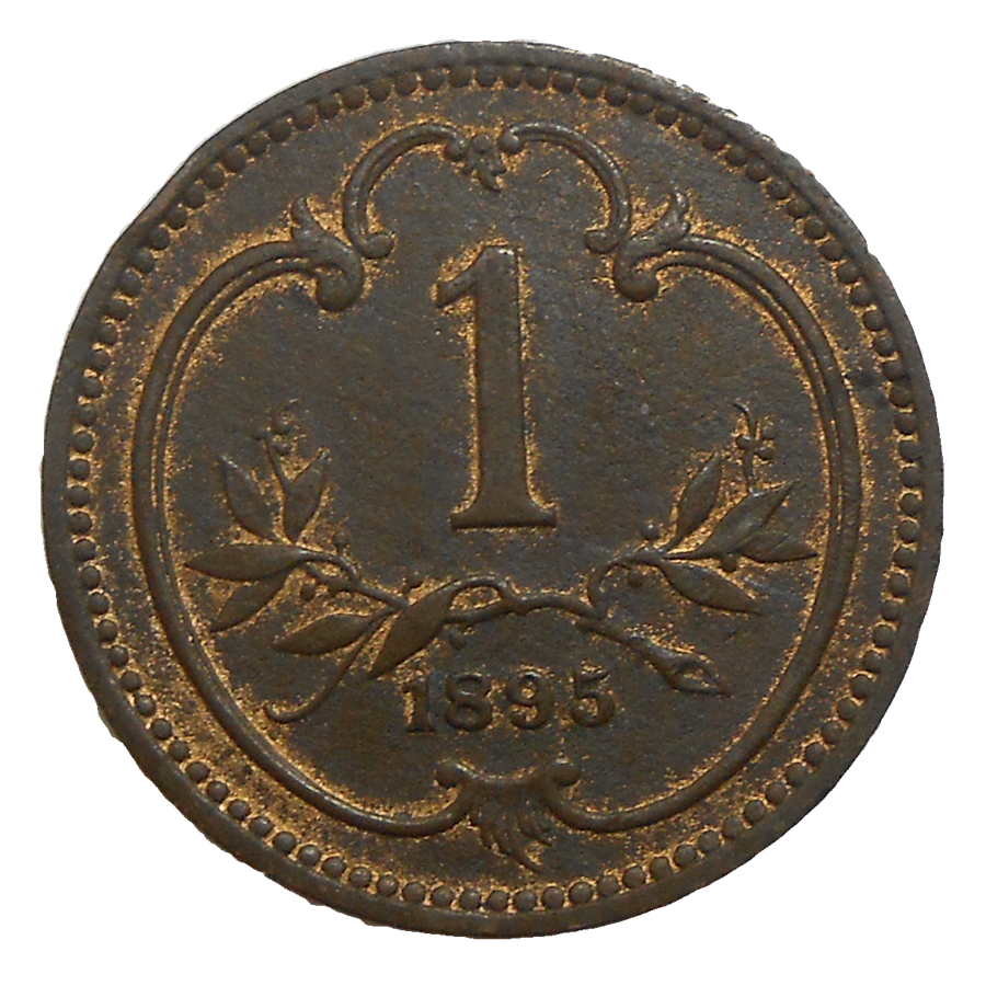 Stará, obehová minca Františka Jozefa I. v hodnote 1 Heller z roku 1895.