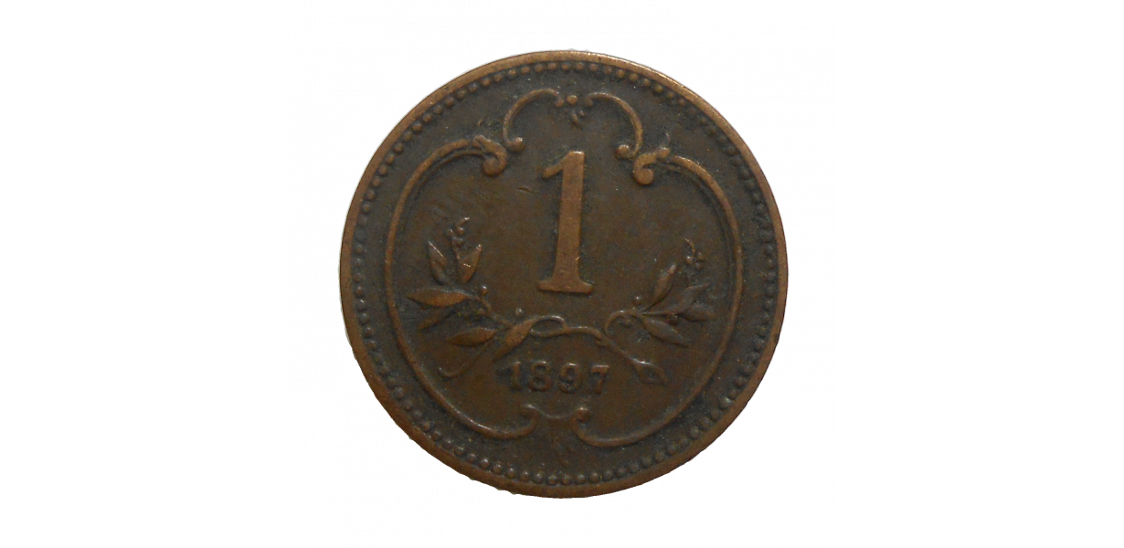 Stará, obehová minca Františka Jozefa I. v hodnote 1 Heller z roku 1897.
