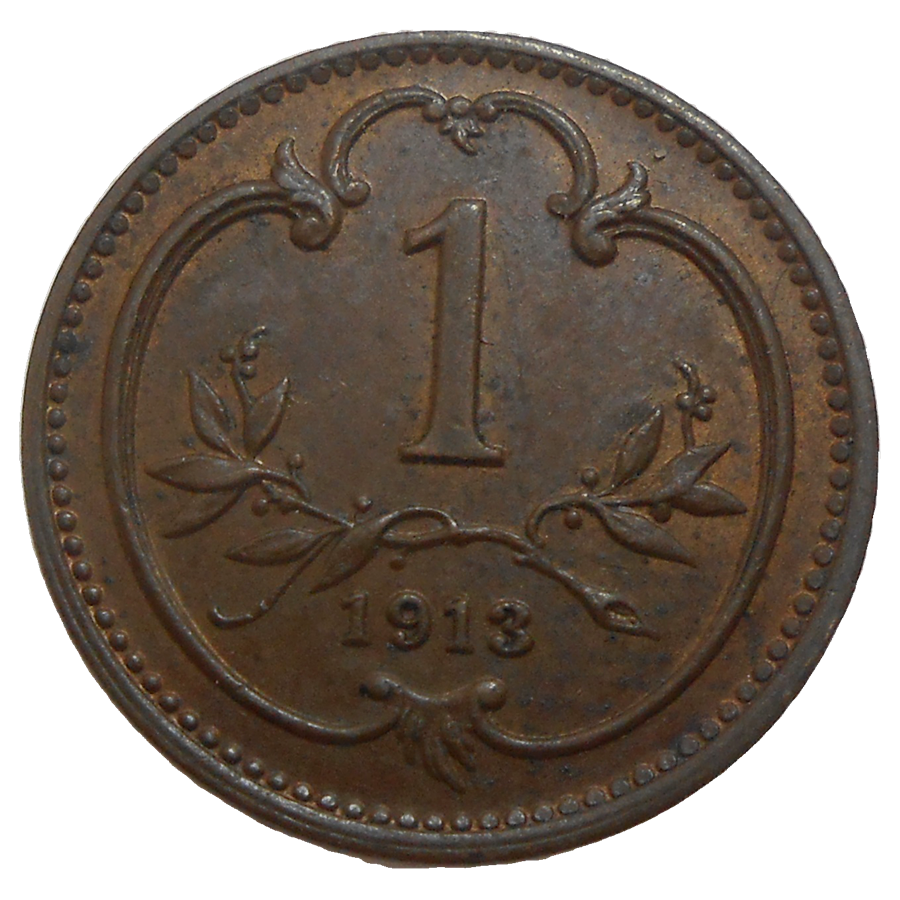 František Jozef I. 1 Heller 1913 bz. Stará, bronzová, obehová minca Františka Jozefa I. v hodnote 1 Heller z roku 1913 – Numizmatický obchod