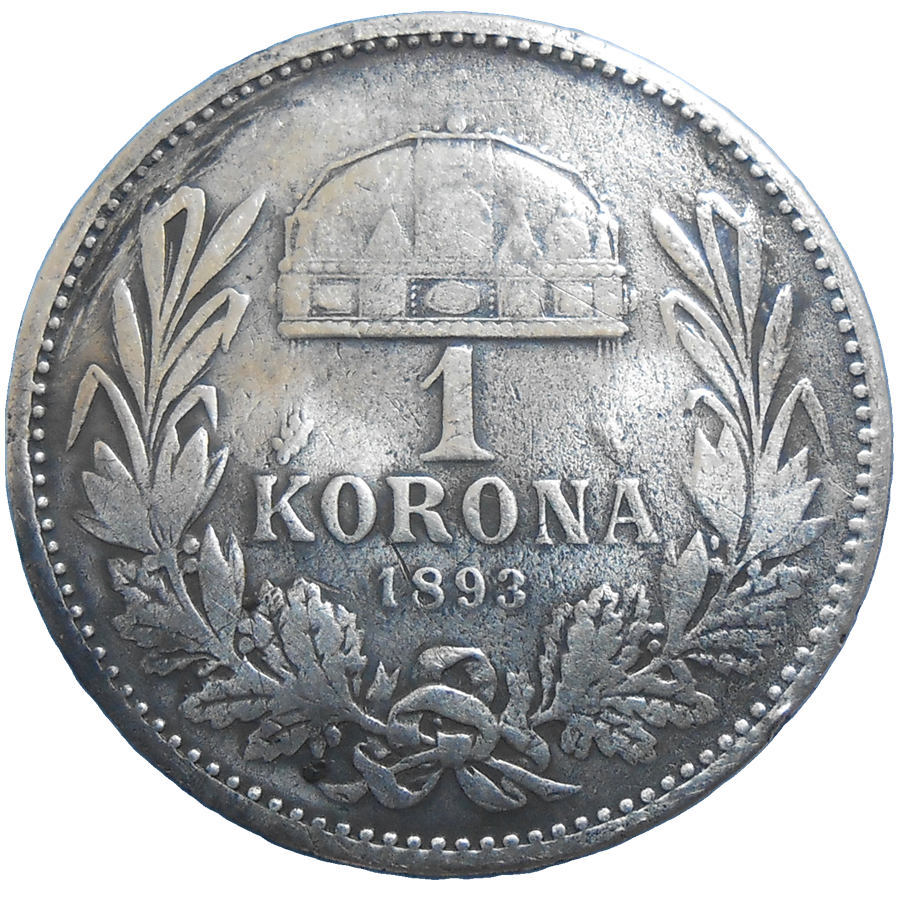Stará, strieborná, obehová minca Františka Jozefa I. v hodnote 1 koruny z roku 1893.