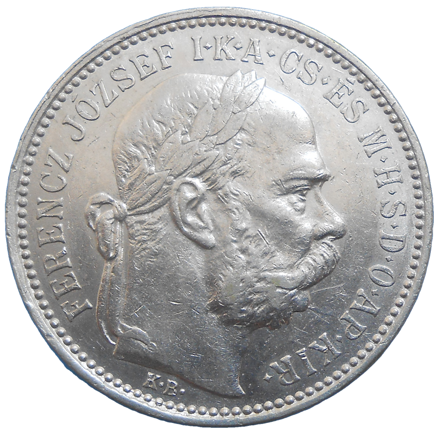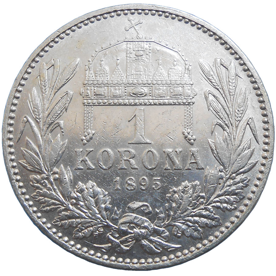 Stará, strieborná, obehová minca Františka Jozefa I. v hodnote 1 koruny z roku 1895.