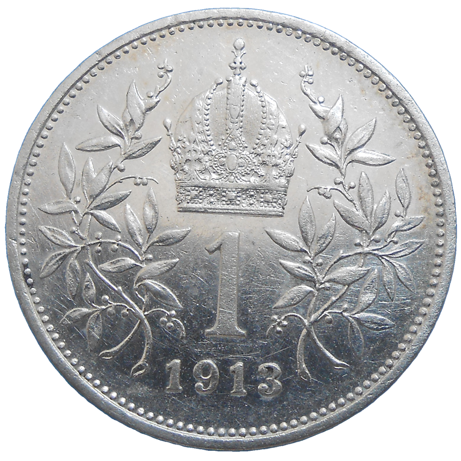 František Jozef I. 1 koruna 1913 bz. Stará, strieborná, obehová minca Františka Jozefa I. v hodnote 1 koruny z roku 1913 – Numizmatický obchod