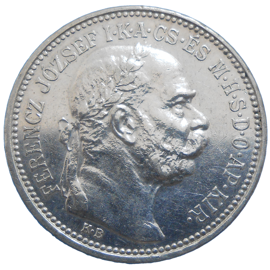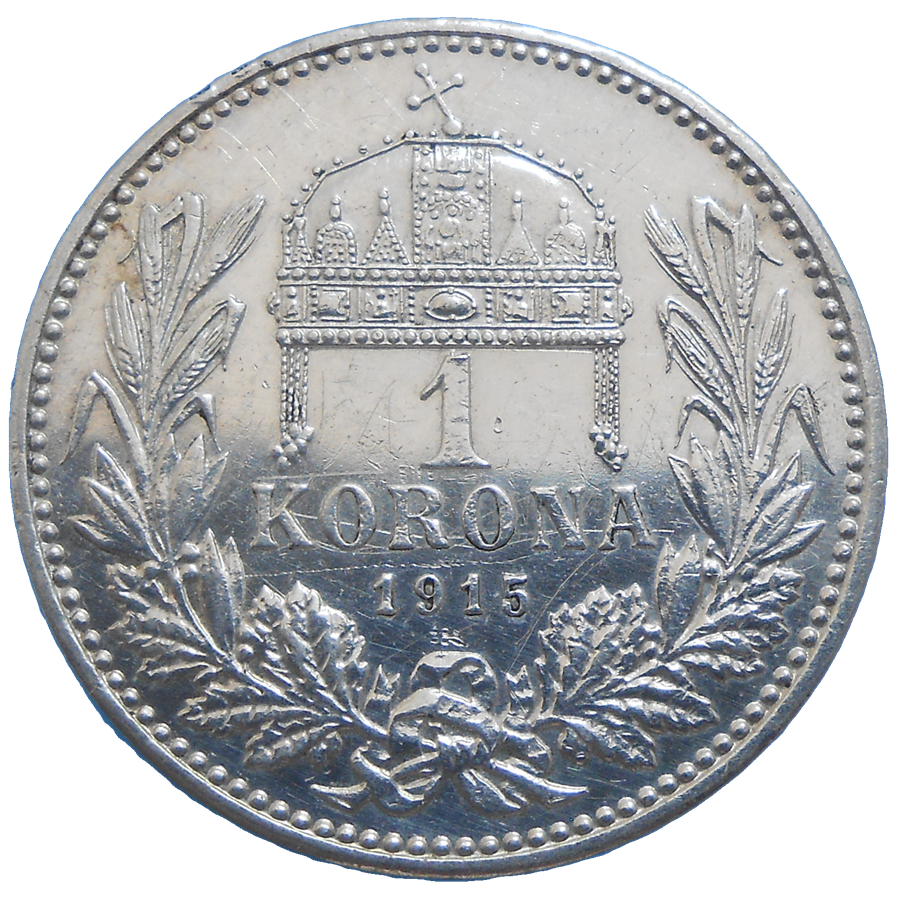 Stará, strieborná, obehová minca Františka Jozefa I. v hodnote 1 Koruny z roku 1915.