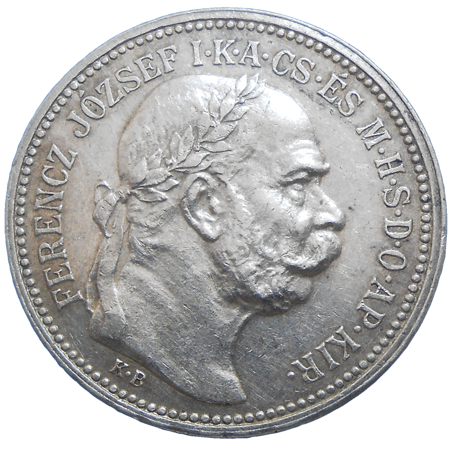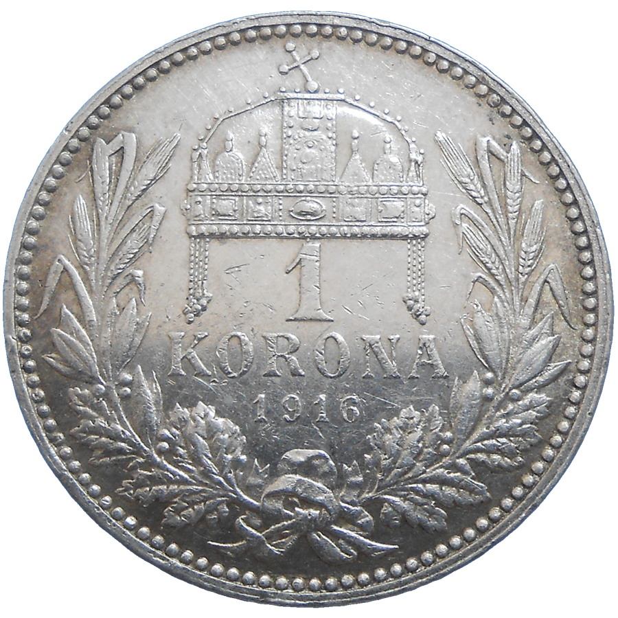 Stará, strieborná, obehová minca Františka Jozefa I. v hodnote 1 Koruny z roku 1916.