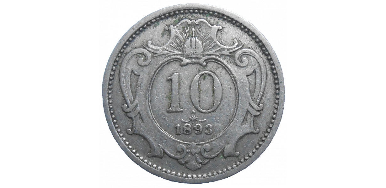 František Jozef I. 10 Heller 1893 bz, Mincovňa Viedeň, Stará, obehová minca