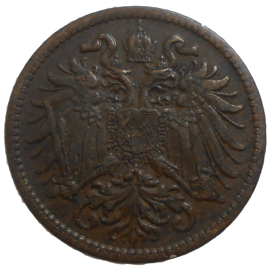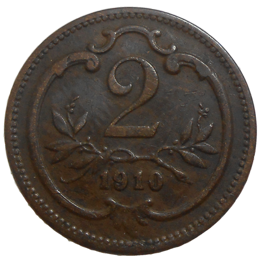 Stará, bronzová, obehová minca Františka Jozefa I. v hodnote 2 Helleru z roku 1910.