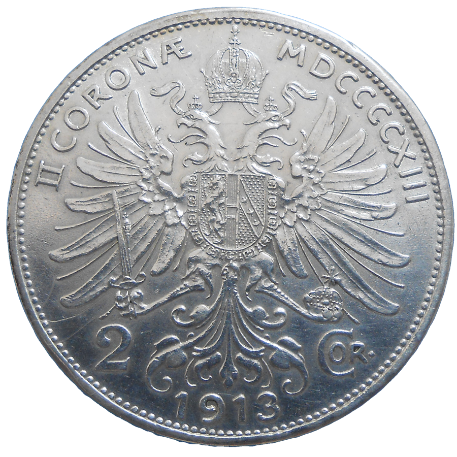 František Jozef I. 2 koruna 1913 bz. Stará, strieborná, obehová minca Františka Jozefa I. v hodnote 2 koruny z roku 1913 – Numizmatický obchod