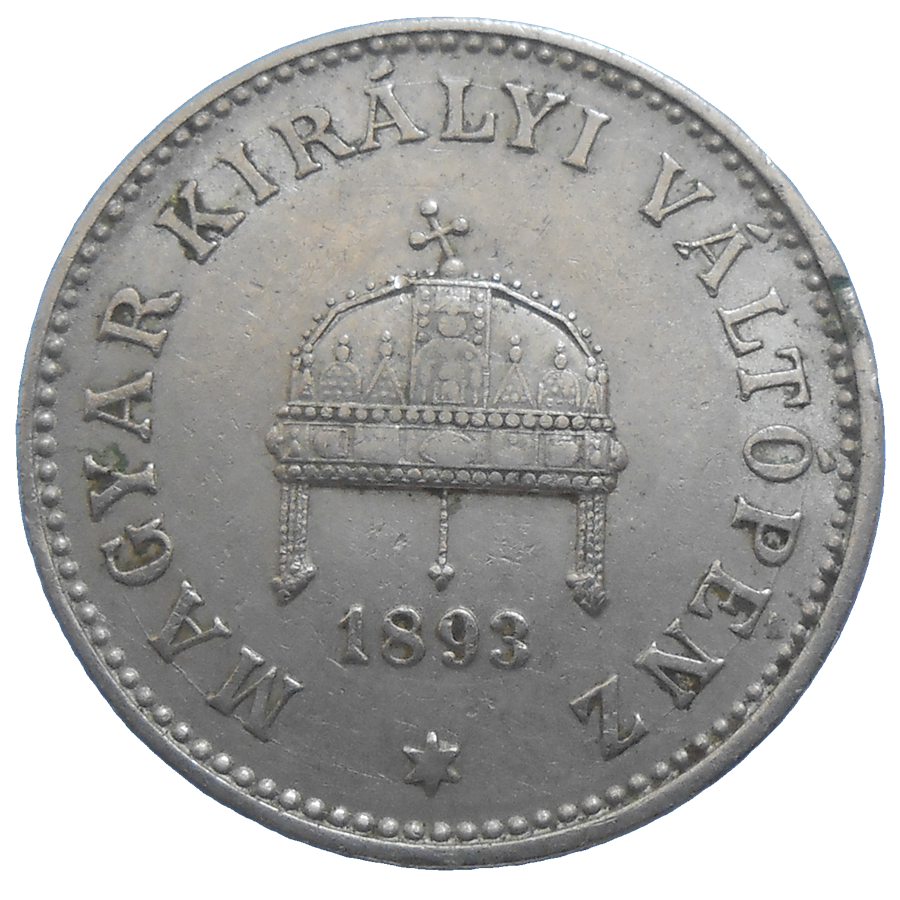 Stará, niklová, obehová minca Františka Jozefa I. v hodnote 20 Fillérov z roku 1893.