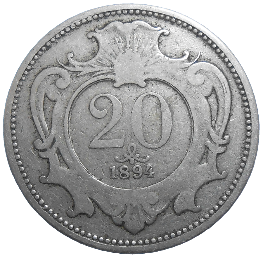 František Jozef I. 20 Heller 1894 bz. Stará, niklová, obehová minca Františka Jozefa I. v hodnote 20 Helleru z roku 1894 – Numizmatický obchod