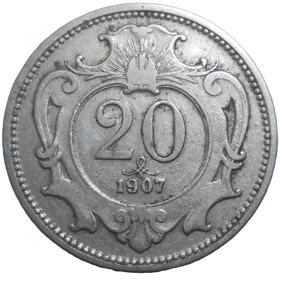 František Jozef I. 20 Heller 1911 bz Stará, obehová minca Františka Jozefa I. v hodnote 20 Heller z roku 1911.
