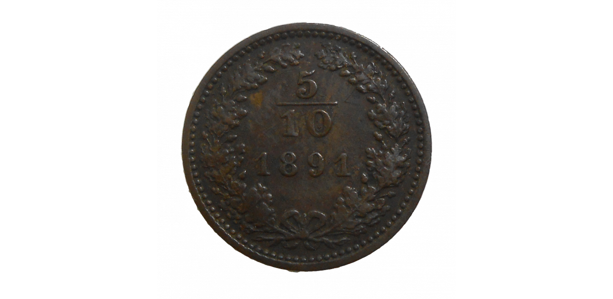 obehová minca Františka Jozefa I. v hodnote 5/10 grajciaru z roku 1891 – Numizmatický obchod