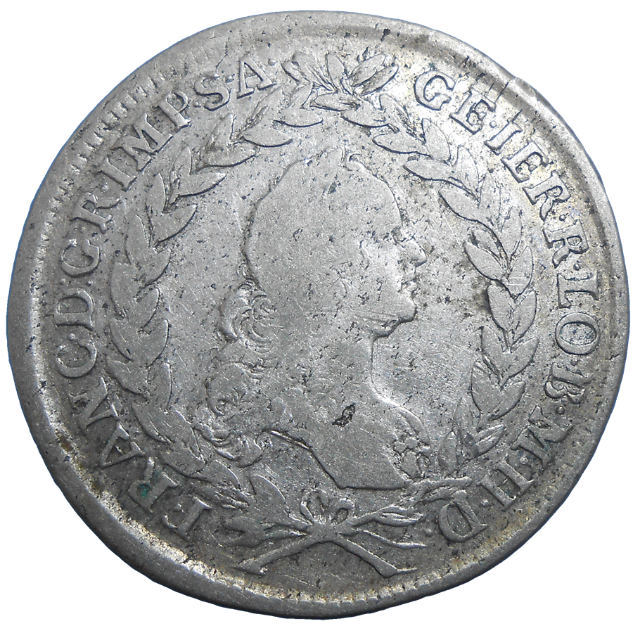 František Lotrinský 20 Grajciar 1760 NB. Stará, strieborná, obehová minca Františka Lotrinského v hodnote 20 grajciaru z roku 1760 - Numizmatický obchod